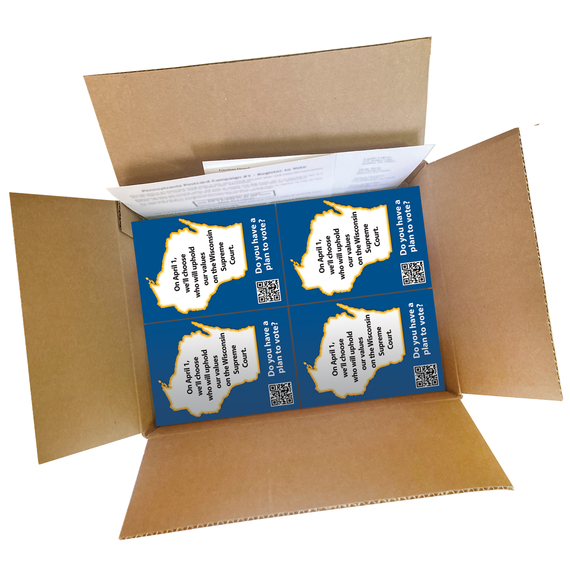 This is a box with 2,000 postcards and addresses for the Wisconsin Supreme Court 2025 Campaign.